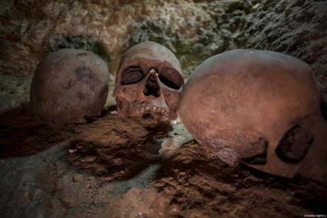 - Calaveras encontradas en la necrópolis, descubiertas durante los trabajos arqueológicos en Minia, Egipto, 24 de febrero de 2018 [İbrahim Ramadan / Agencia Anadolu]