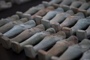 - Estatuas en miniatura encontradas en la necrópolis, descubiertas durante los trabajos arqueológicos en Minia, Egipto, 24 de febrero de 2018 [İbrahim Ramadan / Agencia Anadolu]