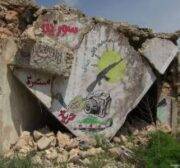- El grafitero sirio Aziz al Asmar, de 35 años, pinta edificios que fueron dañados o prácticamente destruidos tras los ataques aéreos llevados a cabo en Idlib