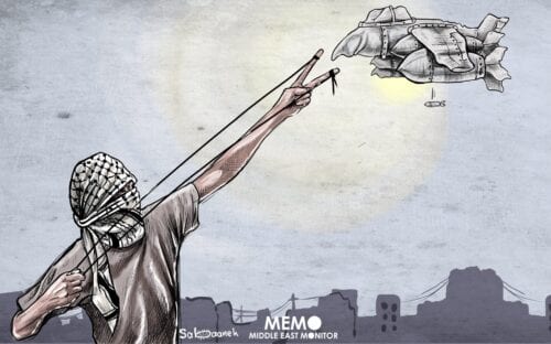 La Segunda Intifada estalló el 28 de septiembre de 2000 - Caricatura [Sabaaneh/MiddleEastMonitor].