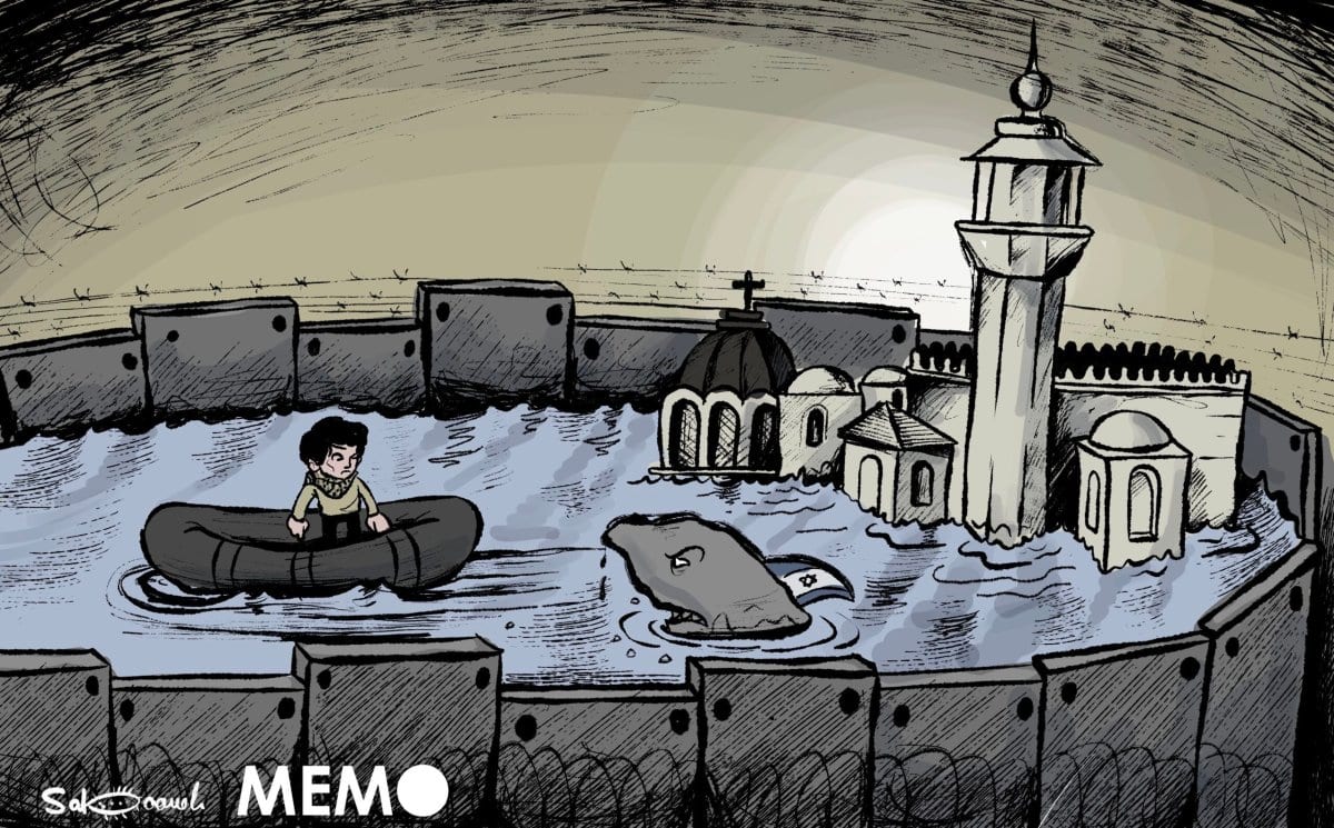 Israel impide que los palestinos regresen a sus hogares en Jerusalén - Caricatura [Sabaaneh/MiddleEastMonitor].