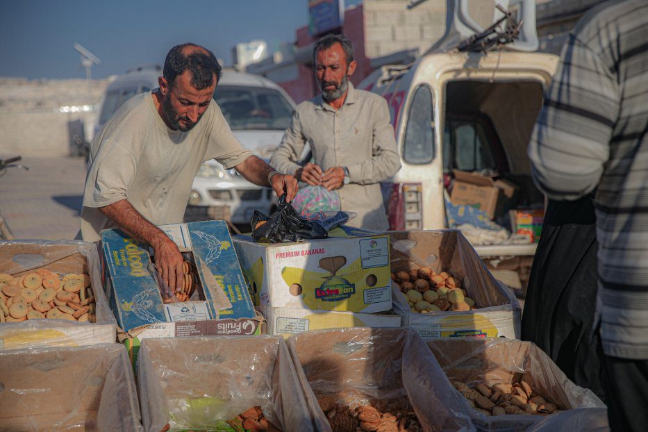 - Refugiados sirios que huyen de los ataques del régimen de Assad y de sus partidarios, compran alimentos y artículos de primera necesidad en los mercados del campo de refugiados de Mashhad Ruhin antes del Eid al-Adha en Idlib, Siria, el 18 de julio de 2021 [Muhammed Said/Anadolu Agency].