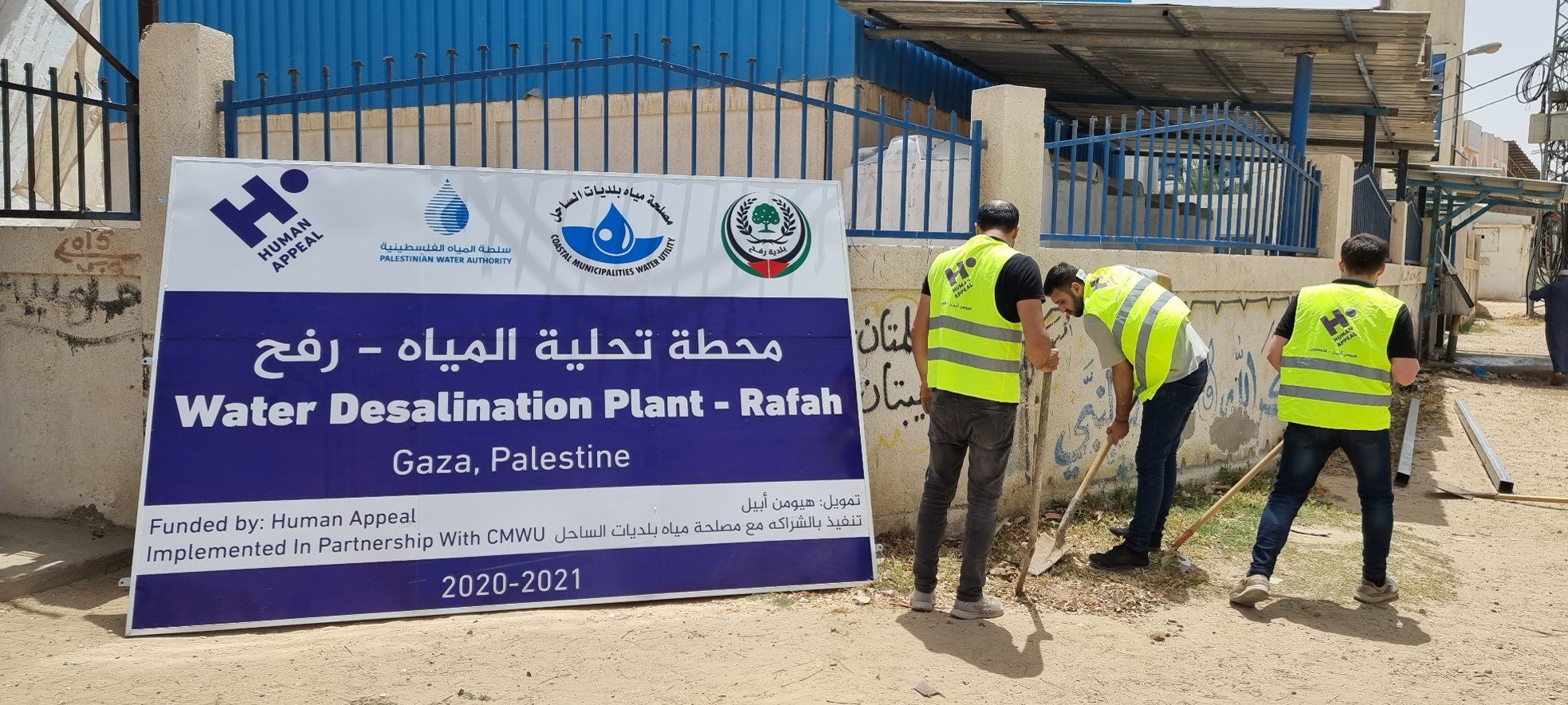 Por ello, Human Appeal UK ha iniciado la construcción de una planta desalinizadora en la zona de Rafah, en Gaza, que incluye tres pozos, y que está previsto que proporcione agua potable limpia y segura hasta a 60.000 personas durante los próximos 15 años, así como que proporcione agua potable a los estudiantes de escuelas y universidades mediante el suministro y la instalación de unidades de desalinización descentralizadas.