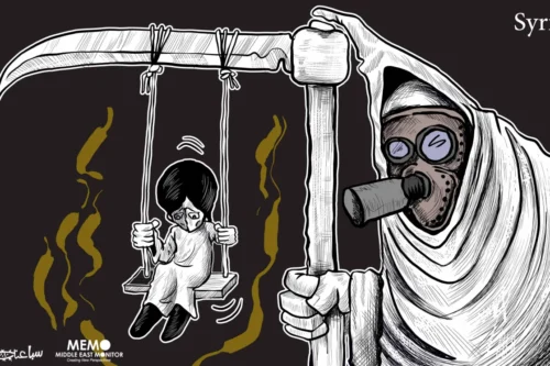 Ataque químico en Siria - Caricatura [Sabaaneh/MiddleEastMonitor].